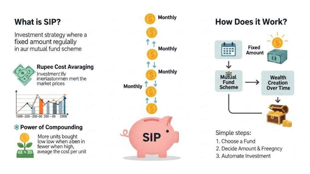 SIP stands for Systematic Investment Plan, and it’s one of the most beginner-friendly ways to invest in mutual funds. Think of it as a recurring deposit for mutual funds – you invest a fixed amount regularly (usually monthly) instead of putting in a large lump sum all at once.
